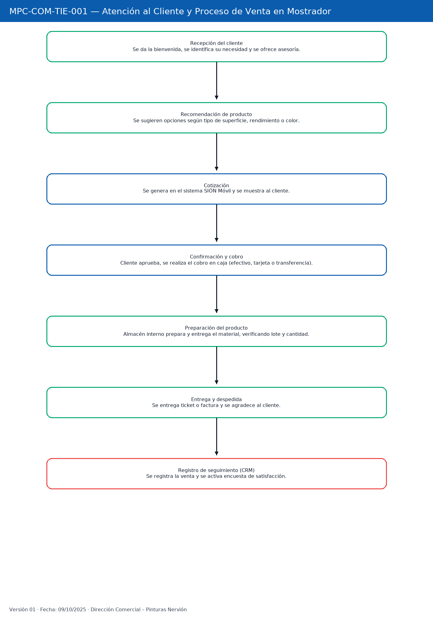 MPC-COM-TIE-001 — Atención al Cliente y Proceso de Venta en Mostrador