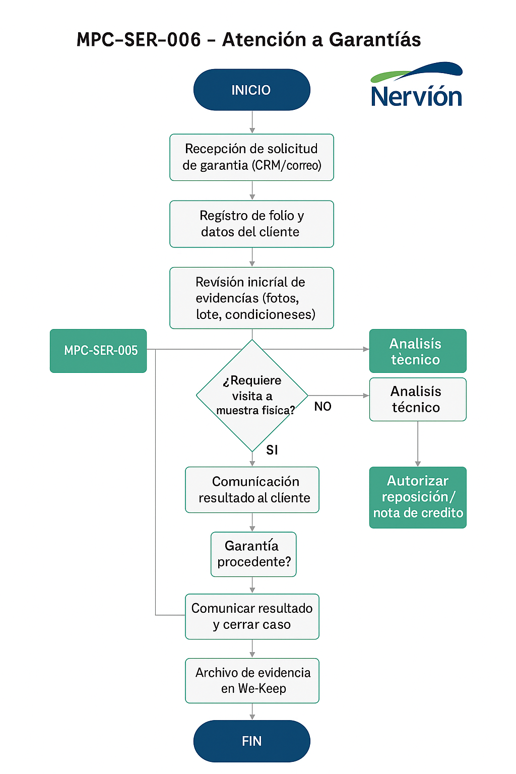 - Procedimientos relacionados: MPC-SER-002 y MPC-SER-005